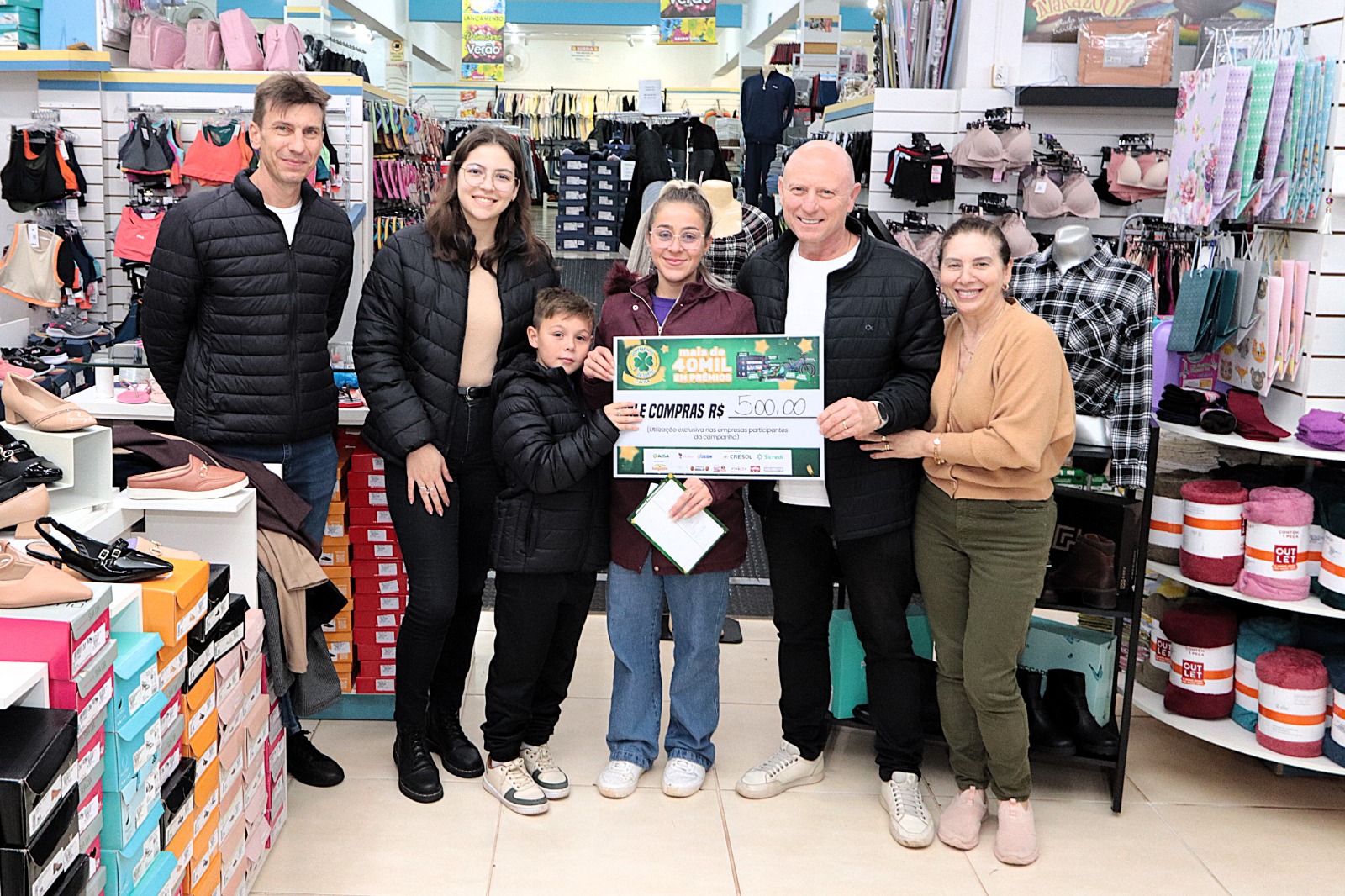 Ao todo, oito prêmios foram entregues nesta primeira etapa. A ganhadora da Smart TV 50 polegadas 4K foi Juliana Jaqueline Richter. Os vales-compra de R$ 1.000 foram entregues para Rogério Cardoso, Eliane Cristina de Amorim Muller e Leize Diandra Davila. Já os vales-compra de R$ 500 foram para Siria Marcela da Silva Gonçalves, Ademar Claudio de Morais, Carolina Eggers e Diovana Paula Pedreira. Os consumidores realizaram suas compras em estabelecimentos participantes, como Loja Tupi, Fatiota, Mercado Sangaletti, Veterinária Braun, Maffini Materiais de Construção e O Boticário.