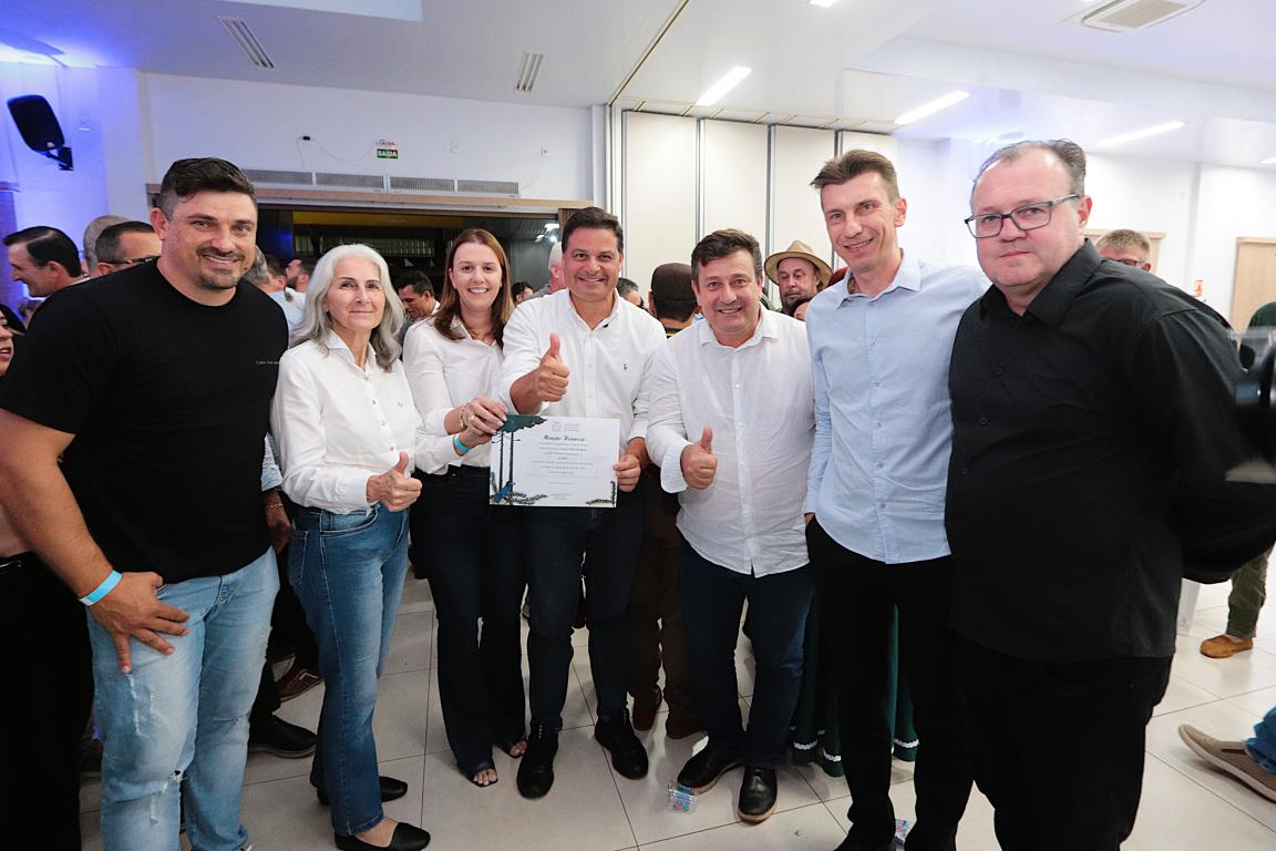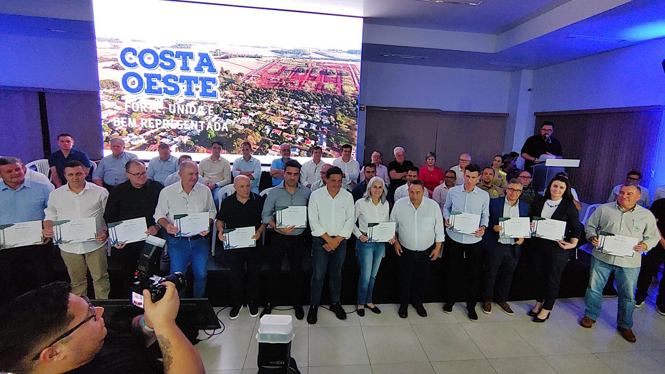 O ato ocorreu em Marechal Cândido Rondon e contou com a presença de prefeitos, vereadores, empresários e representantes de associações comerciais e empresariais do Oeste do Paraná, além de cooperativas.