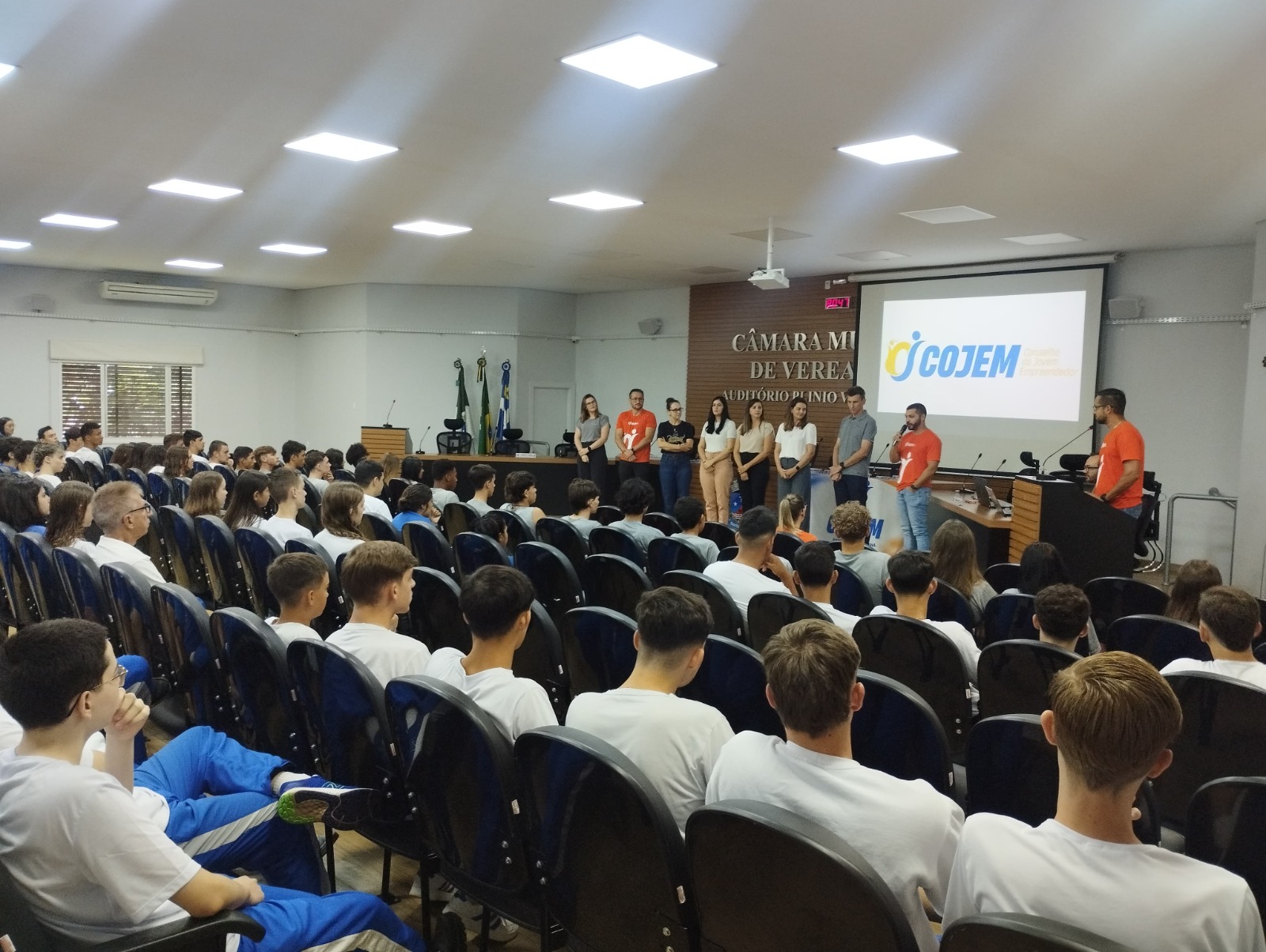 O presidente do COJEM, Lucas Rafael da Silva, destacou a relevância da iniciativa para a formação de novos empreendedores e cidadãos. “É um prazer ver a casa cheia e perceber o interesse dos jovens em se engajar neste movimento. O projeto ‘Empreendedorismo na Escola’ é a cara do COJEM e hoje estamos dando o primeiro passo, com duas palestras, incluindo uma com nossa vice-presidente Andressa. Esse é apenas o início de um projeto contínuo, com atividades que vão ocorrer ao longo do ano”, disse Lucas.