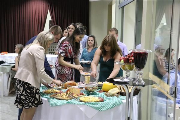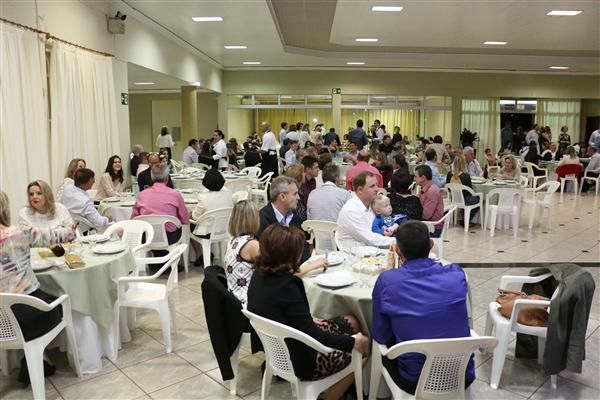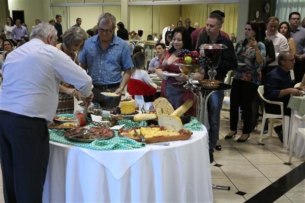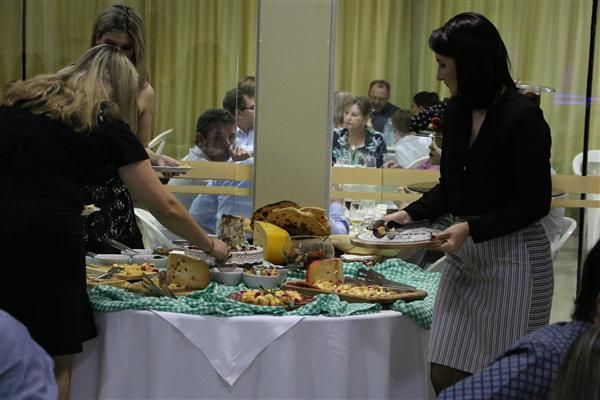 Um número expressivo de pessoas participou do jantar que teve cardápio requintado com buffet de frios, queijos, embutidos, patês, azeitonas e torradas, além de massas, molhos e salada verde mista.