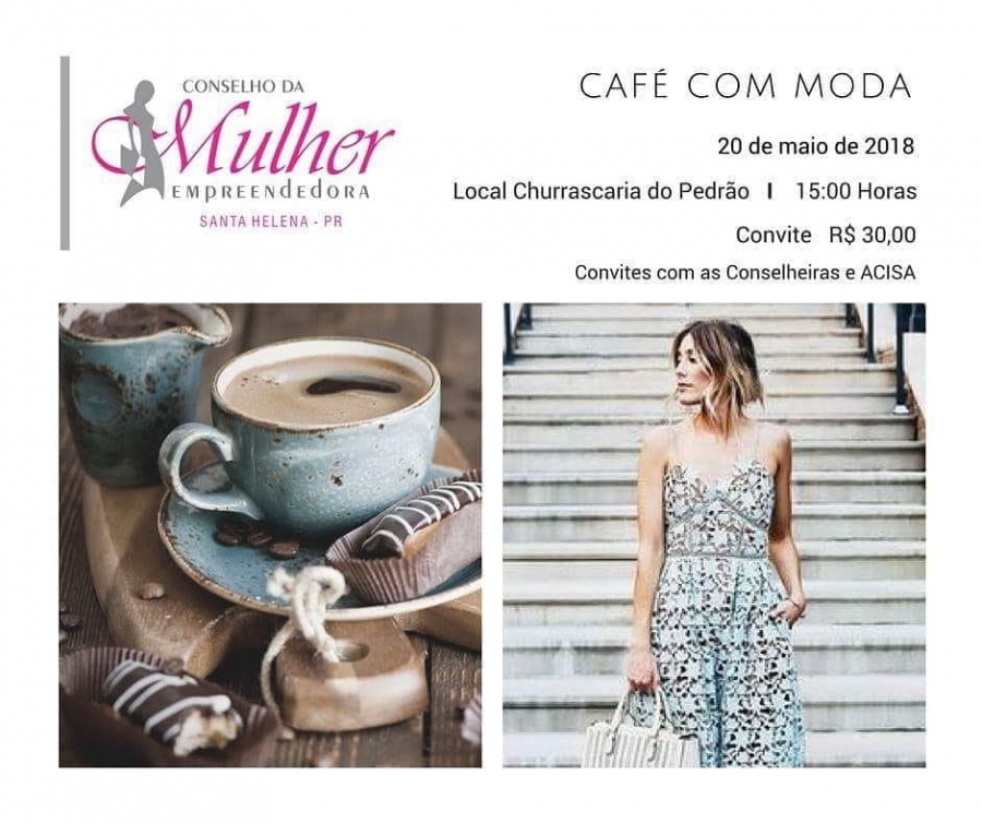 O Café com Moda consiste de um desfile que contempla as empresas ligadas ao Conselho da Mulher Empreendedora, nos setores de roupas, calçados, joias, acessórios, salões de beleza e as maquiadoras. O evento será encerrado com coquetel.