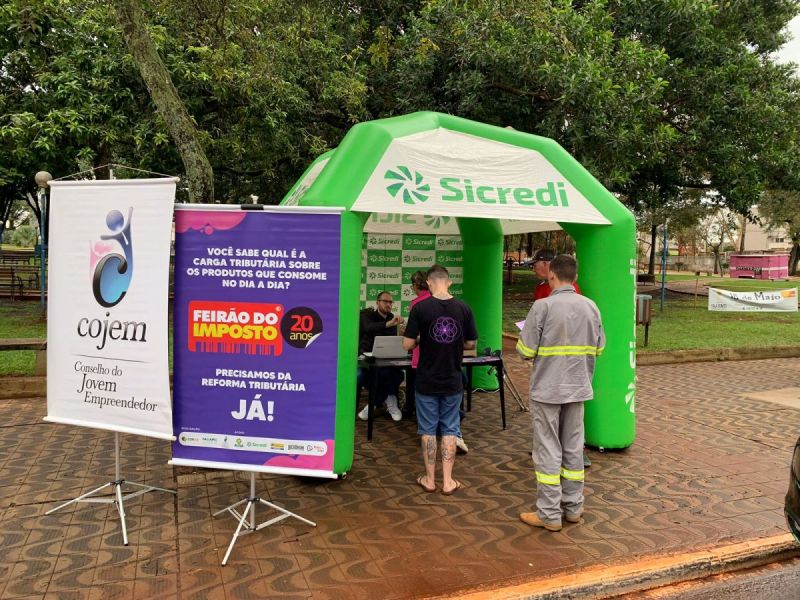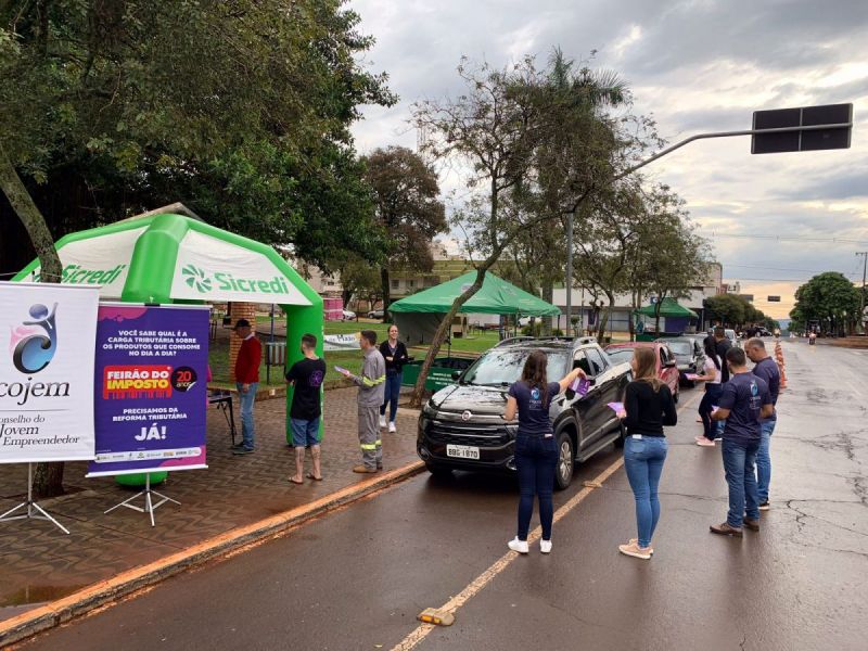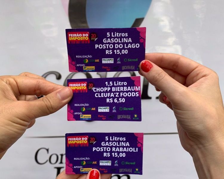 O Conselho do Jovem Empreendedor (Cojem) de Santa Helena realizou sábado (28) o Feirão do Imposto 2022. O trabalho é coordenado pela Confederação Nacional dos Jovens Empresários (Conaje). Em Santa Helena foram vendidos 5 litros de gasolina e 1,5 litros de chopp por pessoa, sem imposto.