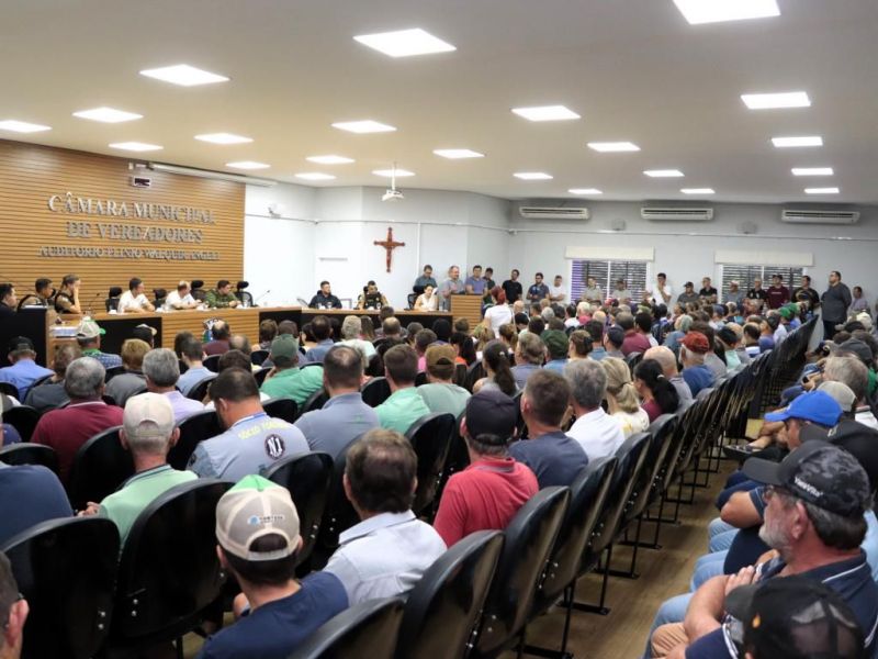 Na tarde desta segunda-feira (18) centenas de produtores rurais se reuniram no auditório da Câmara de Vereadores juntamente a entidades como a Administração Municipal, Sindicato dos Trabalhadores Rurais, Organização Nacional de Garantia de Propriedades e Áreas Produtivas (Ongdap), Associação Comercial e Empresarial de Santa Helena (Acisa), Conselho Comunitário de Segurança e forças policiais.